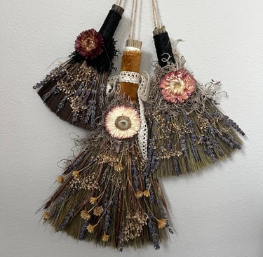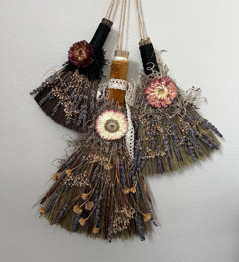 Mossy Magical Besom Brooms. Besom’s, more commonly known as witches brooms, were traditionally used to purify the home, bring Good luck and ward off negative spirits. Perhaps you’ve heard the saying: