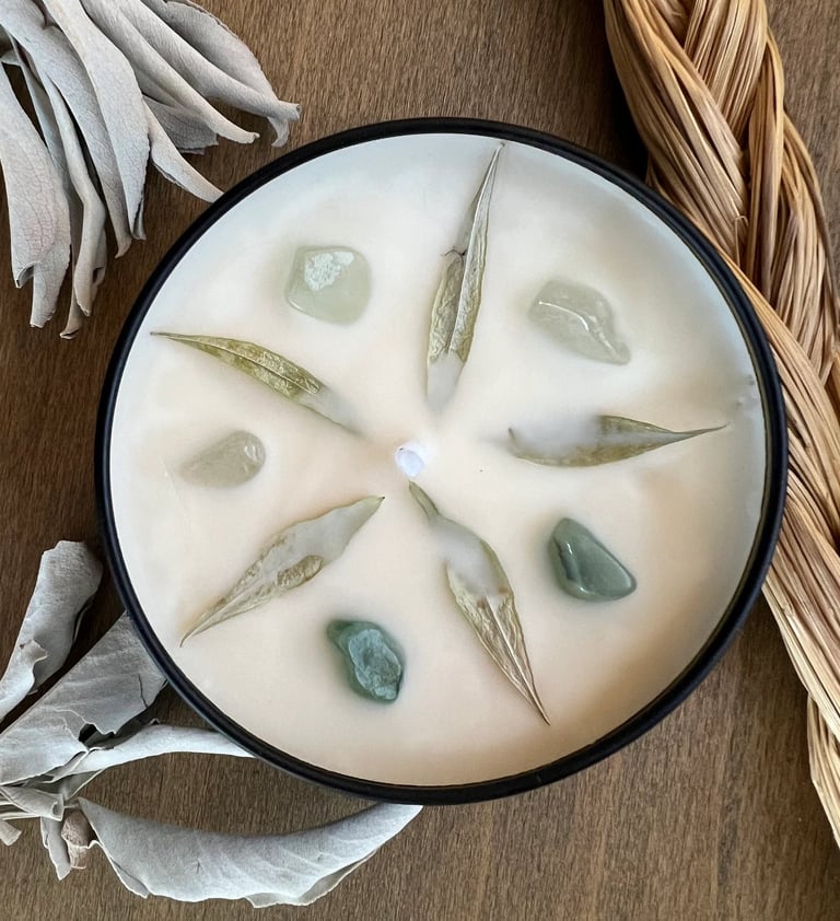 The natural herbal elements in these candles are flammable, though they often sink into the wax and do not cause issue, it is important to monitor your candle to prevent fire. If you wish to remove the herbs or crystals you can do so with a metal tweezers. Coconut and soy wax is a very soft wax that can be easily removed from crystals with a cloth or paper towel if you wish to keep them.
